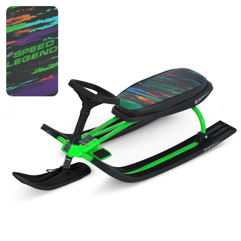 Снігокат MS 1778-7 низька рама,106-47-41см,м'яке сидіння(екошкіра,45-21см,2 полож.), малюнок,зелений