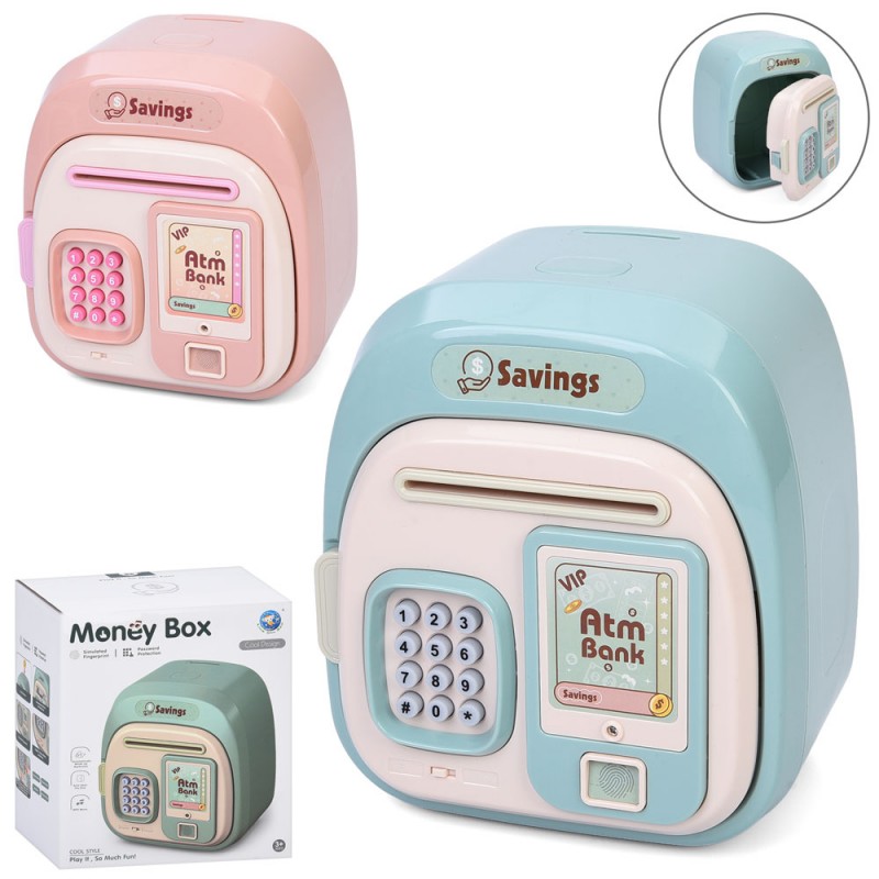 Скарбничка MK 5726 сейф з кодом,19-16-13см,затягує купюри,відбиток,муз.,звук,2 кольори,на бат.,в кор
