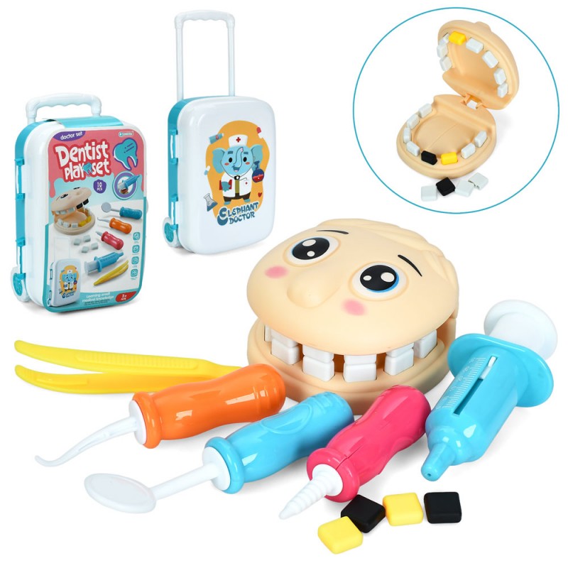 Набір лікаря QY851 стоматолог, щелепи, мед.інстр.,чемодан(2колеса,ручка),10пр,в карт.обг.,21-31-11см