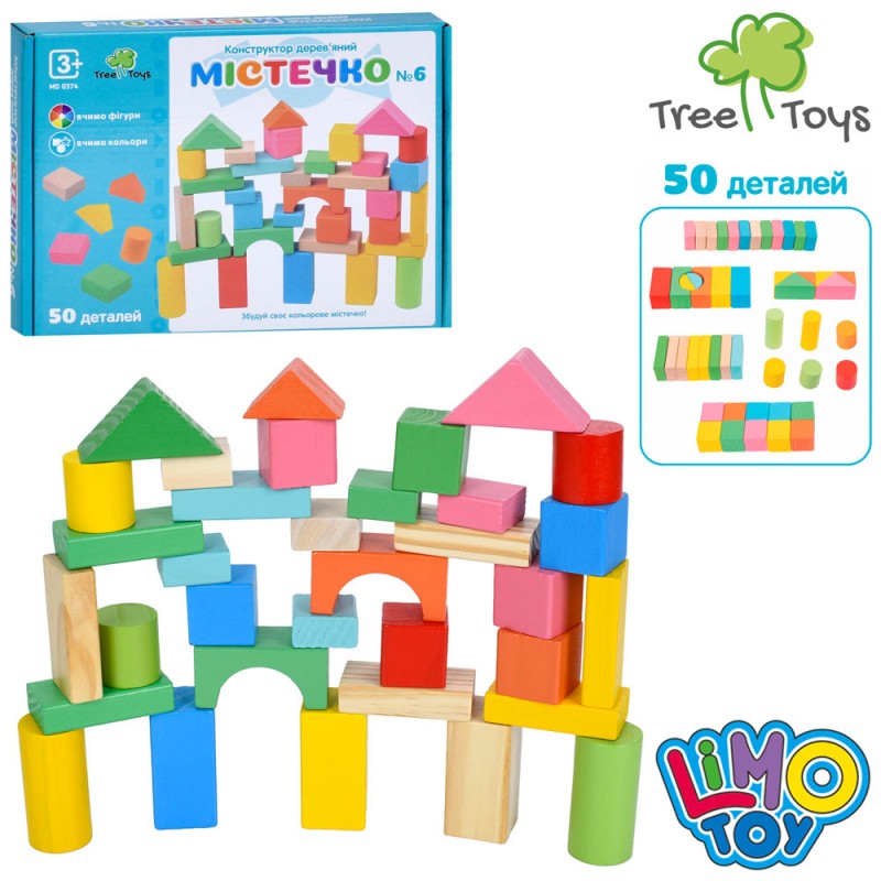Дерев'яна іграшка Будівельні блоки MD 0374 містечко, 50дет., кор., 26-19-3,5 см.
