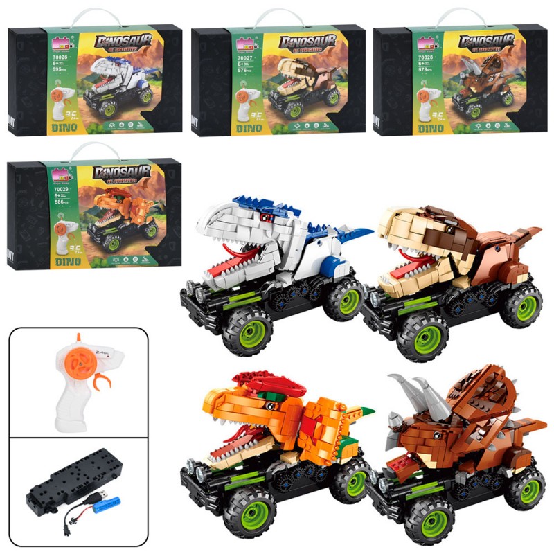 Конструктор 70026-7-8-9D (12шт) р/к2,4G, машина (корпус динозавр), акум, USBзарядне, від 586дет, 4 види, в кор-ці, 36-22-7см