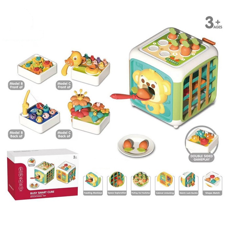 Гра YL562A куб, бізікуб,14,5см, город, гра-нагодуй мавпу,пташку,геометрика,засуви,шестерні,риболовля