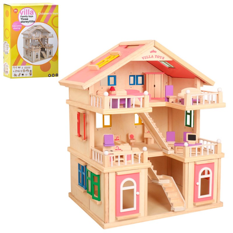 Дерев'яна іграшка Будиночок MD 0162 (1шт) 49-17-в72см, 3 поверхи, меблі, в кор-ці, 51-75-18см