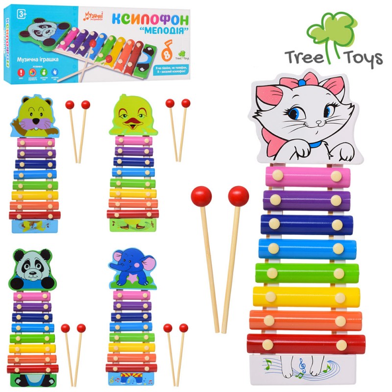 Дере'вяна іграшка Ксилофон MD 0712 тварина, 8 тонів, 4 види, кор., 35,5-13-3 см.