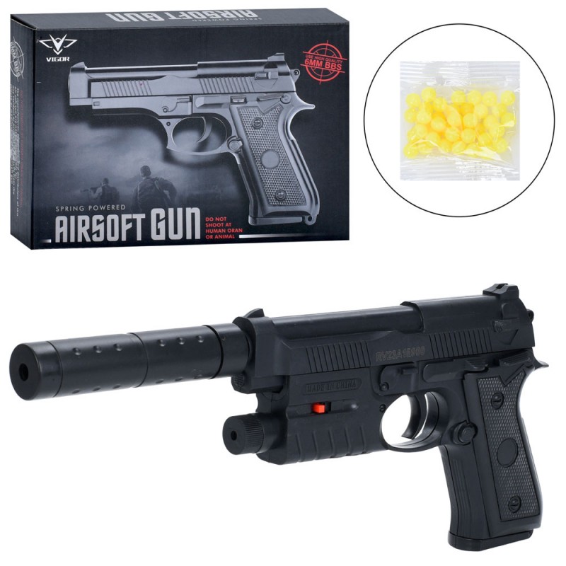 Пістолет 038B 30см, пластикові кулі, лазер, на бат(табл), в кор-ці, 20-14-4,5см