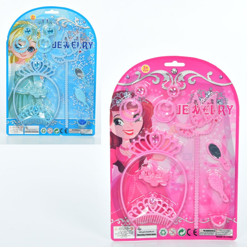 Набір аксесуарів JS-88130-31 9 предметів,корона,каблучка,паличка,сережки,2 кольори,на листі 2-20-1см