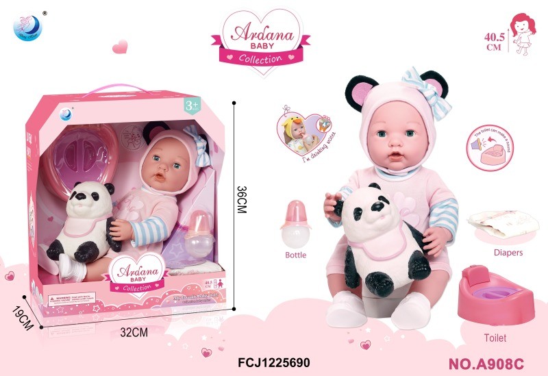 Пупс AKG-0049 п'є-пісяє, горщик-муз., пляшечка, підгузок, панда, бат.(табл), кор., 32-36-19 см.