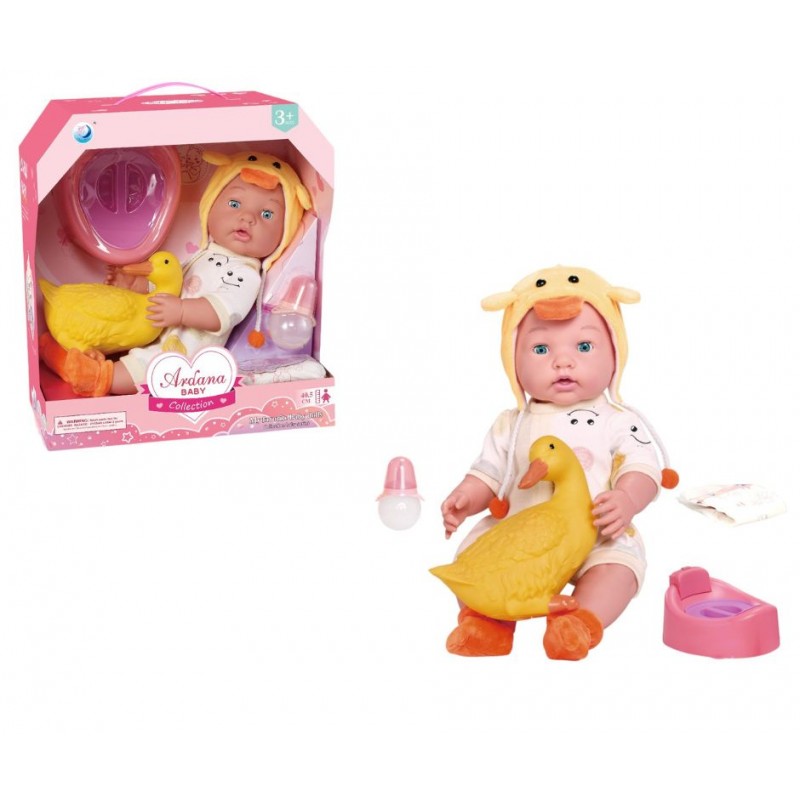 Пупс AKG-0050 п'є-пісяє, горщик-муз., пляшечка, підгузок, качка, бат.(табл), кор., 32-36-19 см.