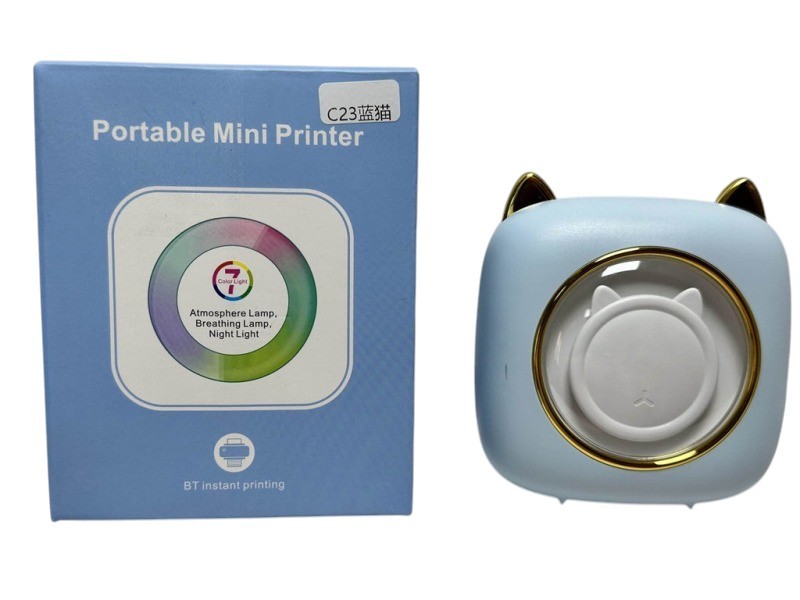 Принтер C23 (50шт) mini, портативний принтер, 8,5-9,5-4,5см, світло, акум., USB зарядне, папір, 2 кольори, в кор-ці, 9,5-11,5-5см