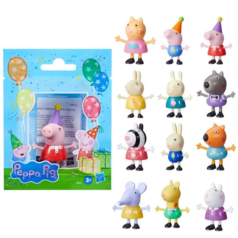 Пеппа, Джордж, С'юзі, Зоя, Ребекка, Емілі, Кенді, Денні та інші друзі зібралися разом, щоб влаштувати веселу вечірку! Кожна фігурка одягнена у яскраве блискуче вбрання, яке створює атмосферу свята. Фігурки можуть сидіти, стояти, рухати ручками і ніжками — усе для того, щоб дитина могла розігрувати улюблені сценки з мультфільму або вигадувати власні історії.
