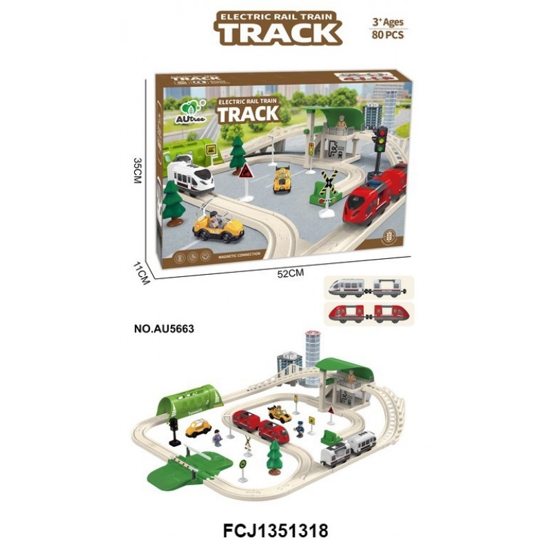 Залізниця AU5663 поїзд 2шт, магнитні кріплення,звук,світло,фігурки,дорожні знаки,машини,84дет,на бат