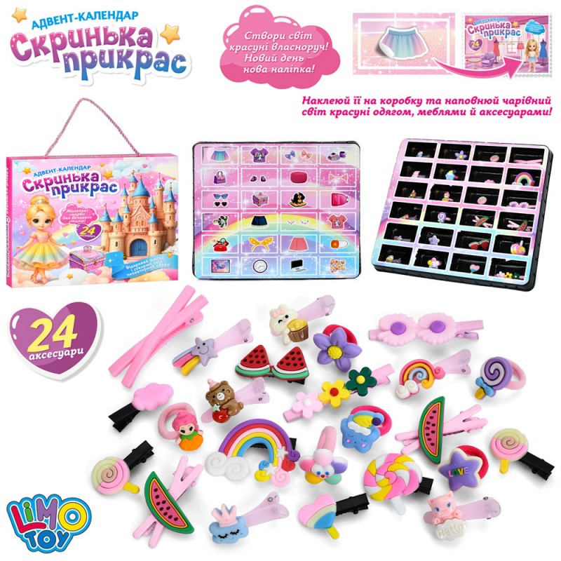 Аксесуар для волосся YXA-001Скринька прикрас, адвент-календар, набір-сюрприз, набір заколок,резинки,