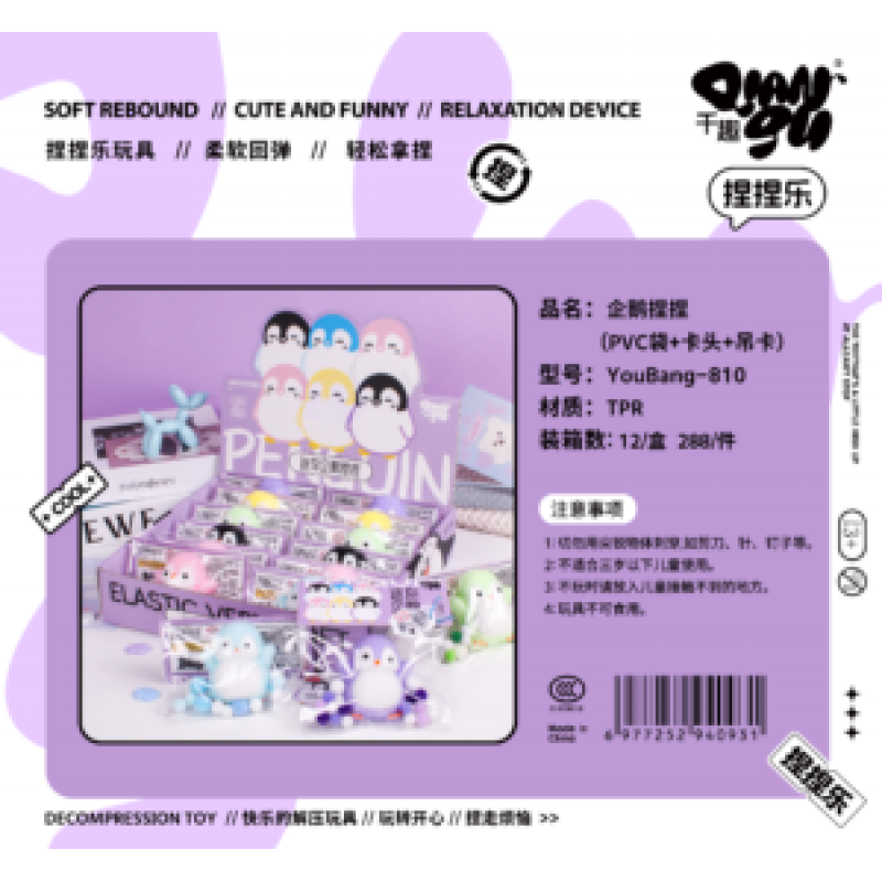 Іграшка-антистрес YouBang-810 пінгвін, мішура,6 кольорів, кул., 12 шт. в диспл., 28,5-6-24см.