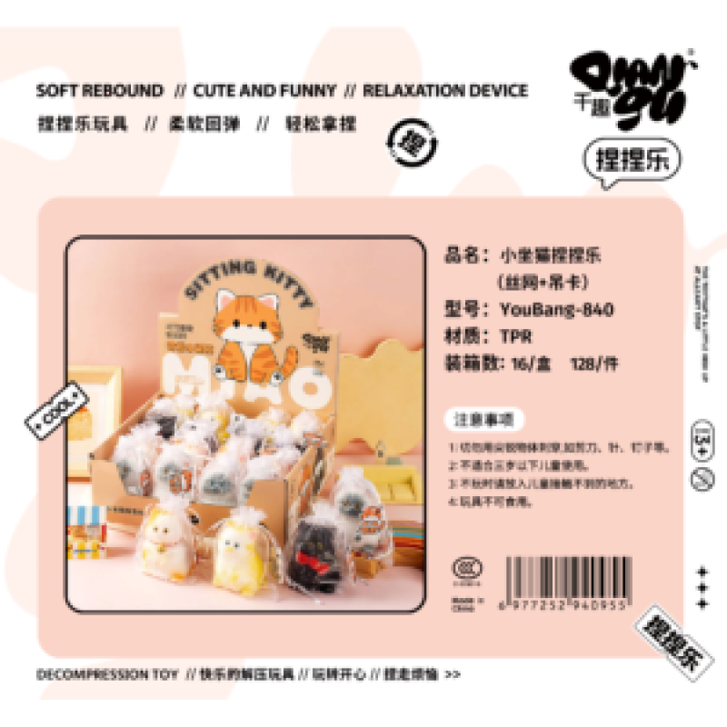 Іграшка-антистрес YouBang-840 кіт, 4 види, кул., 16 шт. в диспл., 26-9-26 см.