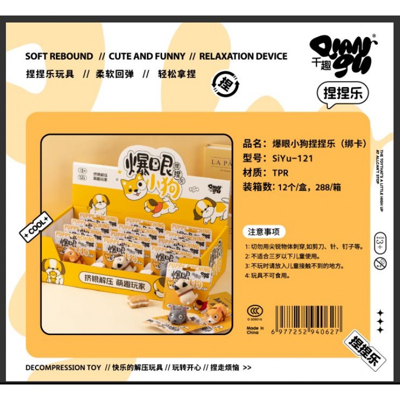 Іграшка-антистрес SiYu-121 собака, глазастик/рухливі очі, лист, 3 види, 12 шт. в диспл.,37-11-21,5см