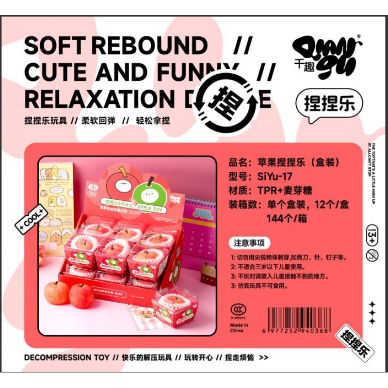 Іграшка-антистрес SiYu-17 яблуко, борошно, кор., 12 шт. в диспл., 25,5-14-17 см.