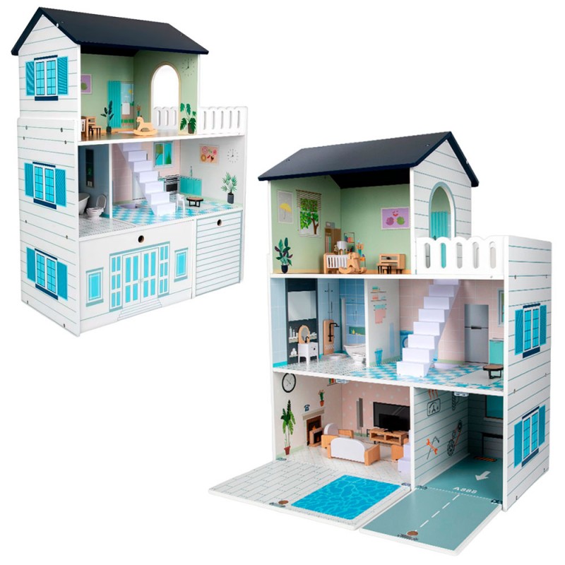 Дерев'яна іграшка Будиночок MD 0748 60,8-29,5-в80см, 3 поверхи, меблі, в кор., 65-34,5-20,5см