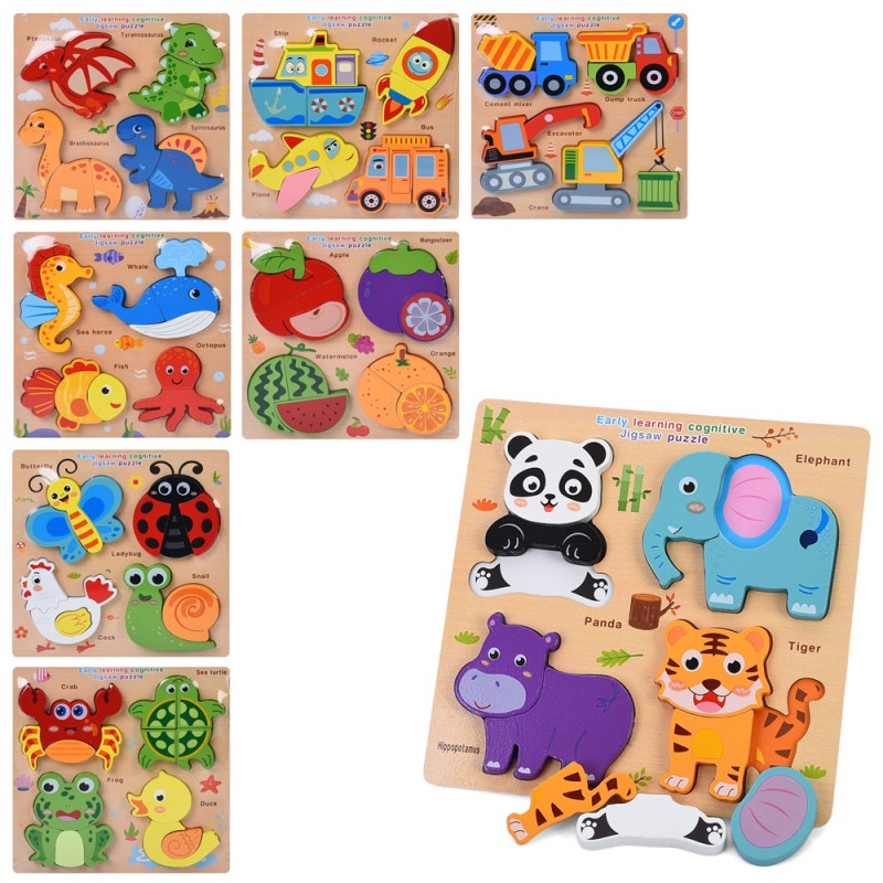 Дерев'яна іграшка Пазли MD 0771 4в1, назві англ., 8 видів, у пакеті, 18-18-1см