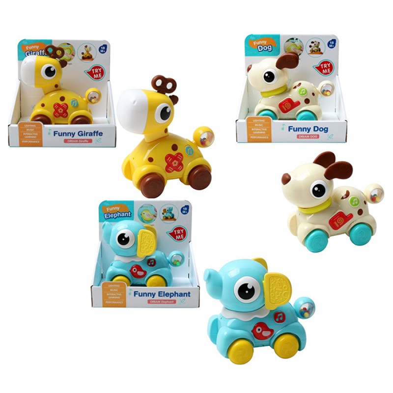 Гра 66005-6-7 (48шт) тварина на колесах, 15см, музика, світло, рухливий хвіст-тріскачка, 3 види, на бат-ці, в кор-ці, 17,5-17-10см