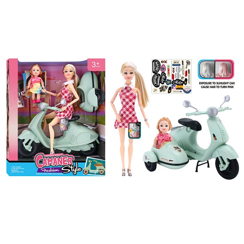 Лялька KQ210C (24шт) 30см, шарнірна, з донькою 11см, мотоцикл (25см, з коляскою), в кор-ці, 27-33-9см