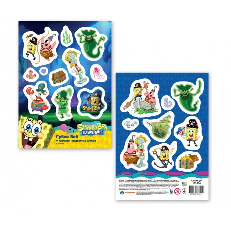 Комплект яскравих наліпок, присвячений персонажам і сценам із повнометражного фільму "Губка Боб у кіно: У пошуках Квадратних Штанів". Наліпки є ліцензійним продуктом і ідеально підходять для декорування, творчості або колекціонування.