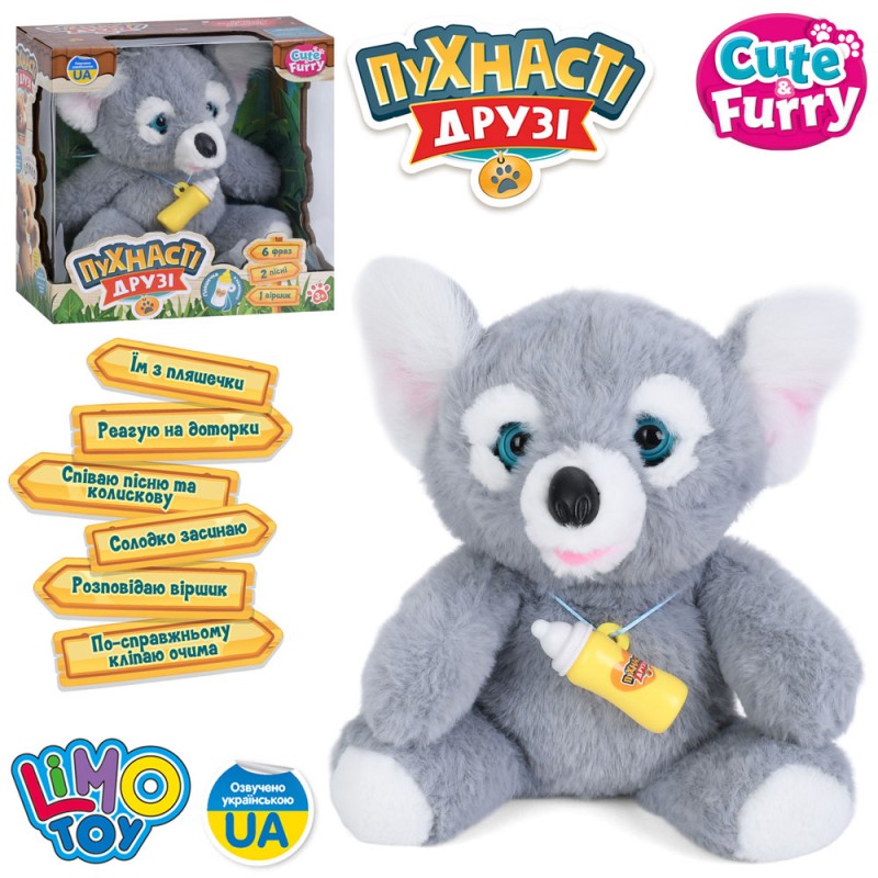 Тварина M 6216 I UA (16шт) коала, сенсорна, клипає очима, реагує на пляшечку, музика-звук(укр), плюш,на бат-ці, в кор-ці,22-23-13см