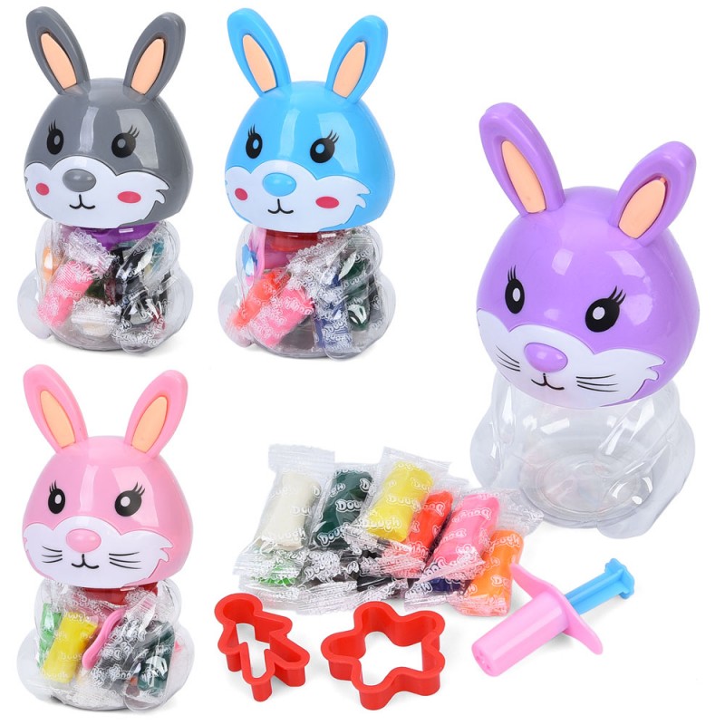 Тісто для ліплення MK 5783 (96шт) 10шт/ 10кольорів, у стіках, аромат, шприц, формочки 2шт, 4 кольори, в колбі (зайчик), 7,5-15,5-7,5см