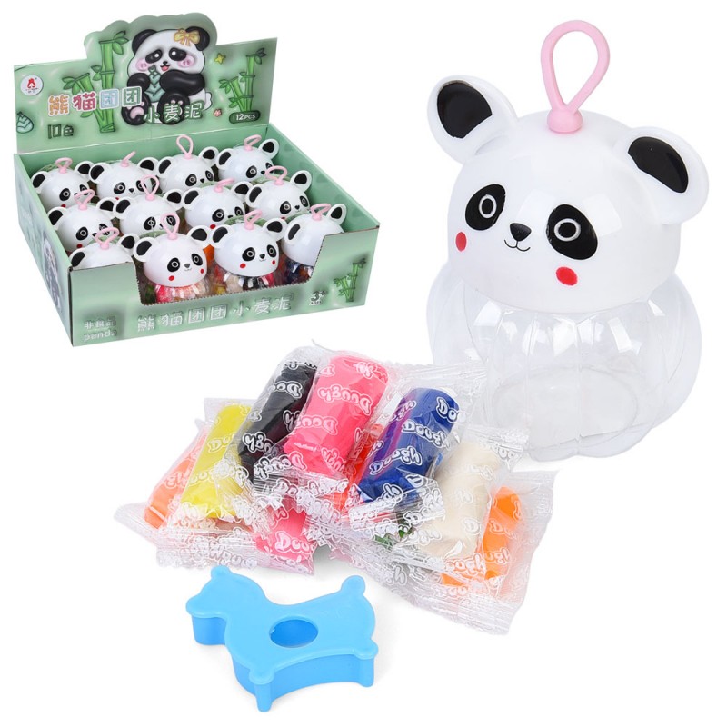 Тісто для ліплення MK 5786 10кольорів, у стіках, аромат, формочка, колба(панда) 9-7-7см,12шт в дисп.