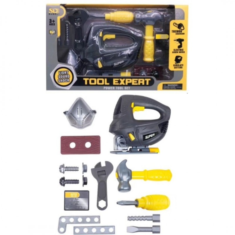 Набір інструментів 6802-1 лобзик,гайкові ключ,викрутка,болти,молоток,муз.,світло,бат.,кор.,38-23,5-9