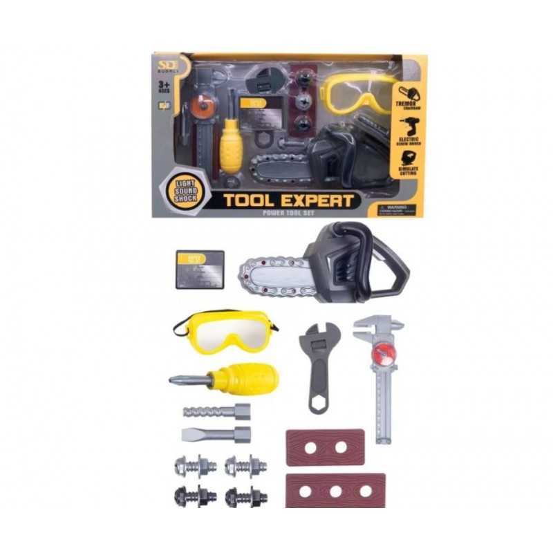 Набір інструментів 6803-1 пила, окуляри,викрутка,болти,гайк.ключ,штангенциркуль,муз.,світло,бат.,кор