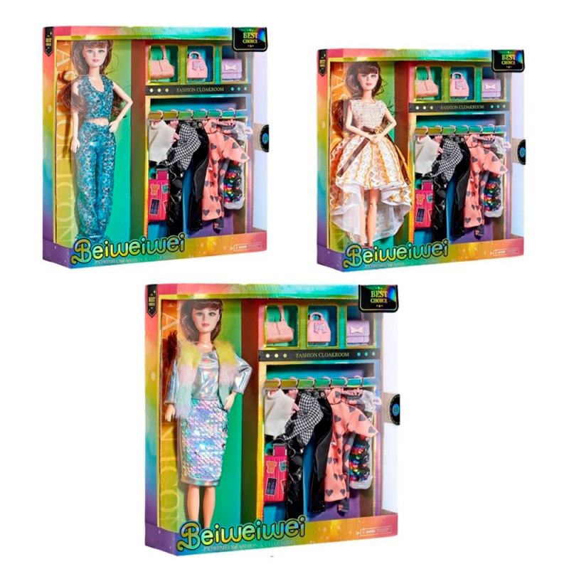 Лялька з вбранням FD0410-11-12 (18шт) 30см, шарнірна, сумки, 3 види, в кор-ці, 31-33-8см