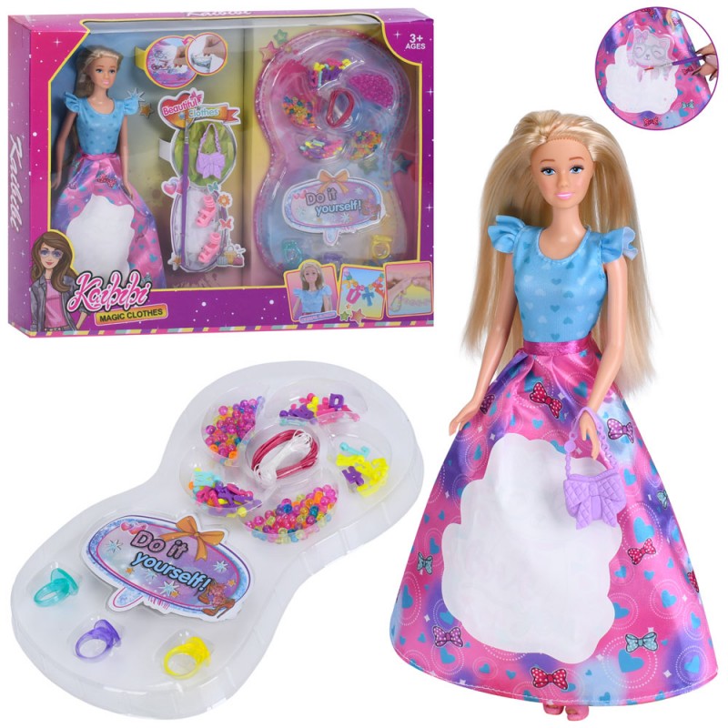 Лялька WG295 27см,плаття-розмальовка(малювання водою),пензлик,аксесуари,намистини,в кор.,42-32-5,5см