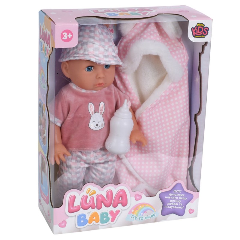 Пупс AKG-0034 (24шт) 35см, п'є-пісяє, пляшечка, ковдра, в кор-ці, 26,5-36-11см