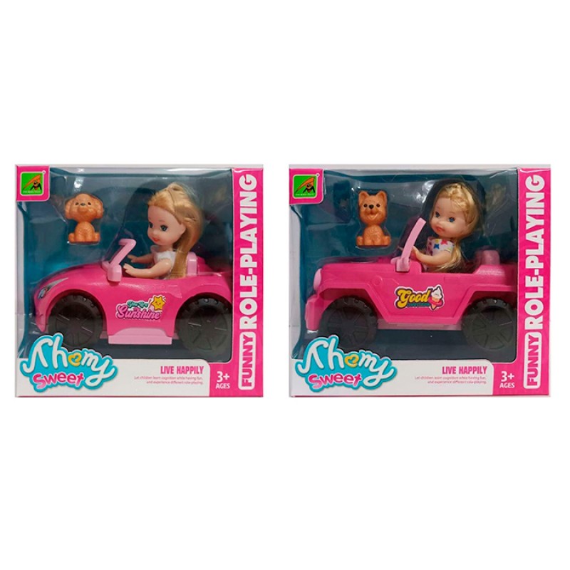 Лялька 9045-18-19 11см, машина 15см, собака, 2 види, в кор-ці, 15,5-13-10см