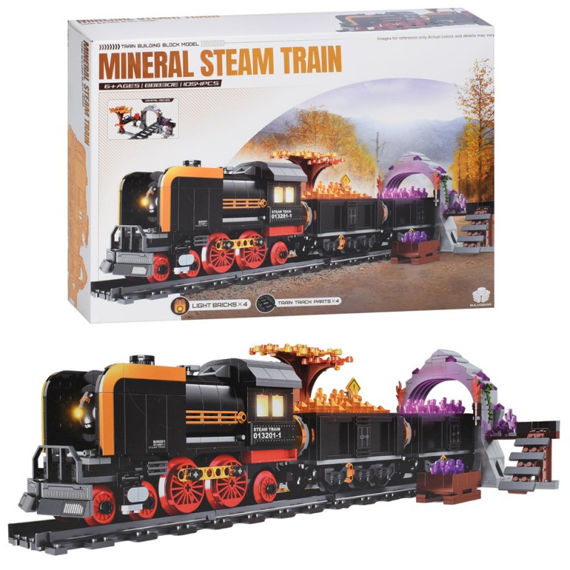 Конструктор BB830E (8шт) поїзд, дорога, тунель, світло, магнитні кріплення, 1054дет, бат(табл), в кор-ці, 45-32-8см