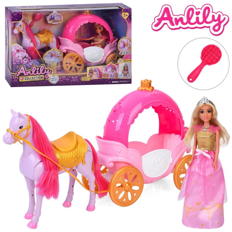 Карета 636061 (6шт) 31см, з конячкою (25см, ходить, звук), лялька 28см, гребінець, в кор-ці, 57-35-17,5см