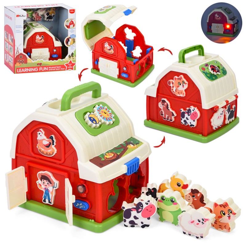 Гра 35973 (6шт) будинок, музика-звук(англ), світло, сортер (фігури-тварини), шестерні, рухливі деталі, на бат-ці, в кор-ці, 26-27-17,5см