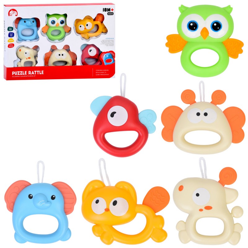 Брязкальце 1688-94 (36шт) набір 6шт, від 7,5см, прорізувач, текстурні деталі, петелька, в кор-ці, 32-20,5-4см