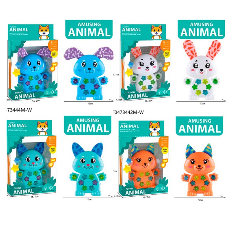 Гра 20244-45-47 (48шт) тварина, 14см, музика, звук(англ), світло, вушка шуршать, 2 режими гучності, 4 види, на бат-ці, в кор-ці, 16-25-5см