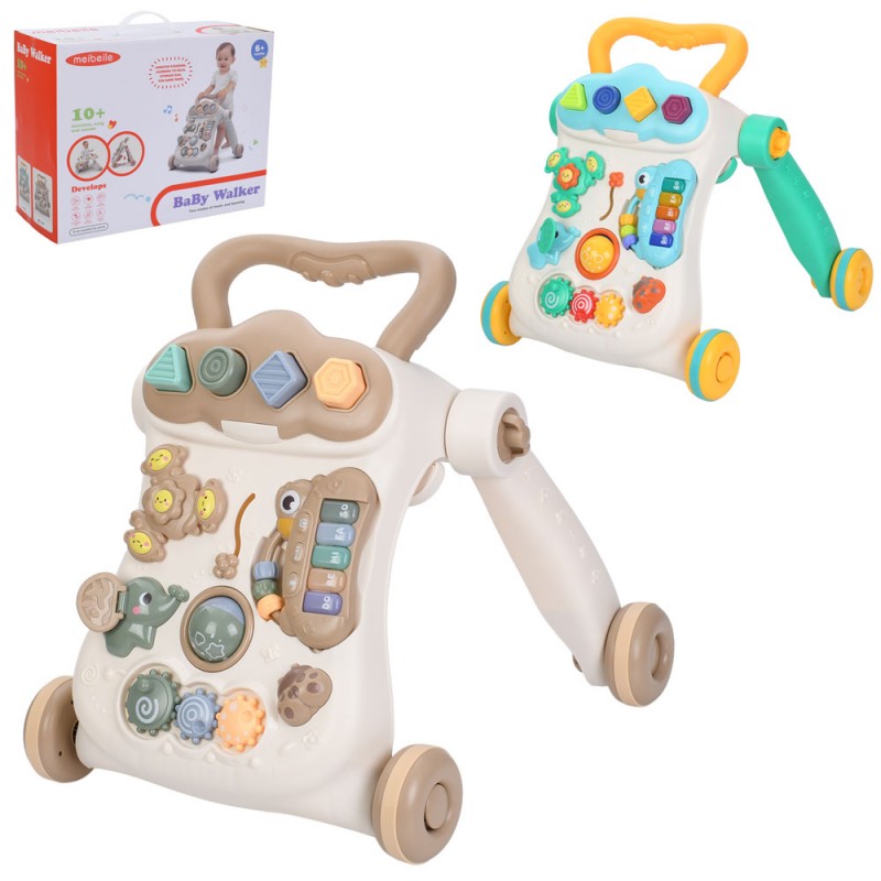 Каталка-ходунки 01233 (6шт) ігрова панель, піаніно, музика, світло, шестерні, сортер (4 фігури), 2 кольори, на бат-ці, в кор-ці, 44-34-19см