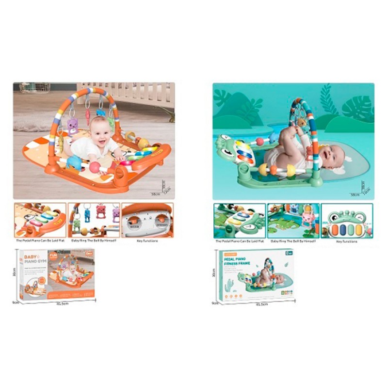 Килимок для немовляти 8808-3-4 (18шт) 70-45см, дуга, підвіски 5шт (тварини-брязкальця), піаніно,музика, світло, 2 види,на бат-ці,в кор-ці, 45,5-30-9см
