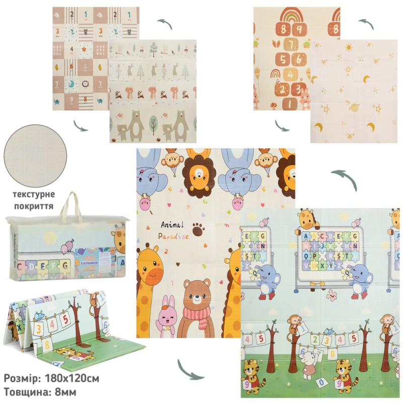 Килимок-мат MR 1569-1 XPE, 120-180см, двосторонній, товщина 8мм, 3 види, у сумці, 59-37-9см