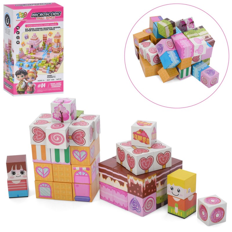 Конструктор RDF-1006 (12шт) магнітний, куб 2см, 54дет, в кор-ці, 15-25-7см