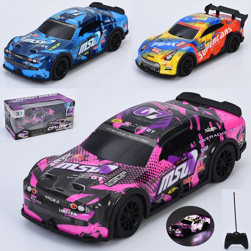 Машина 666-138-139P (18шт) р/к, 19см, 1:22, світло, корпус не б'ється, гумові колеса, 2 види/мікс кольорів, на бат-ці, в кор-ці, 27-12,5-14см