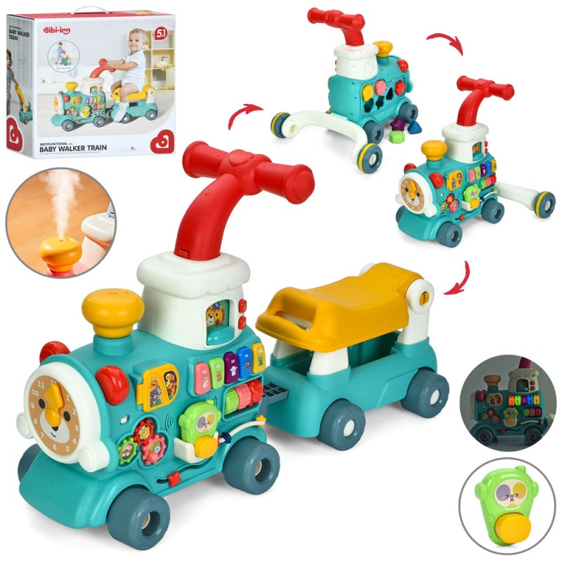 Каталка-ходунки 6064 5в1,поізд+вагон,68,5-22-в42см,толокар,пара/дим, піаніно, муз., світло,бат.,кор.