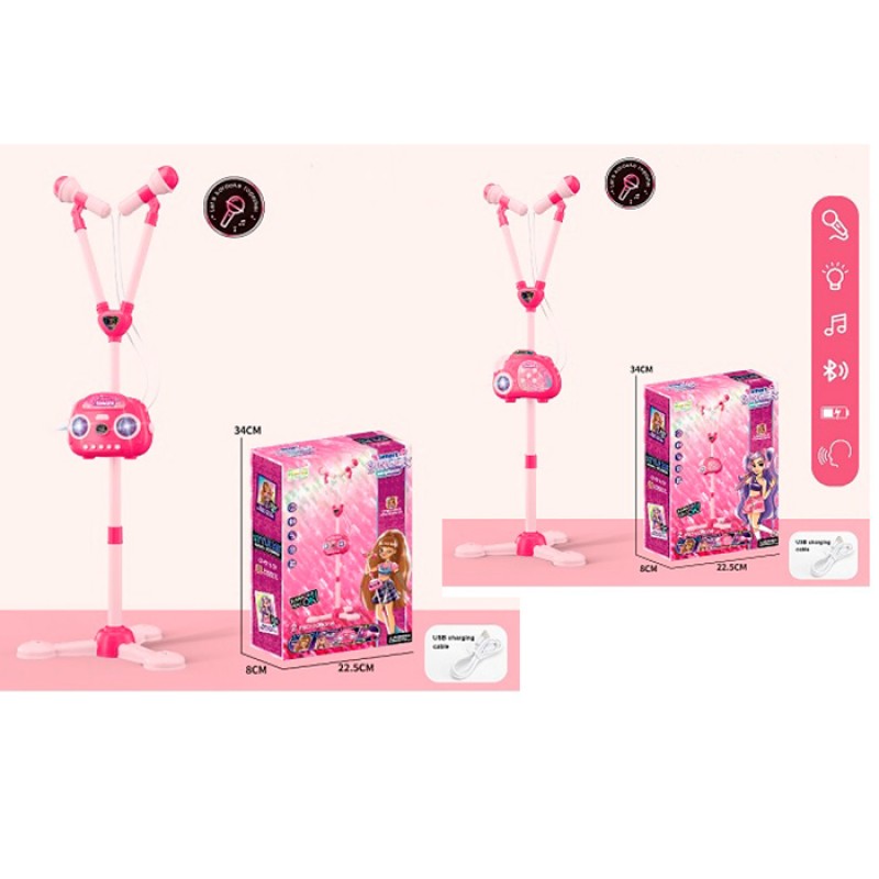 Мікрофон HY832-833-E (16шт) на стійці, 35-35-в102см, мікрофон 2шт, музика, світло, Bluetooth, 2 види, на бат-ці/USBшнур, в кор-ці, 22,5-34-8см
