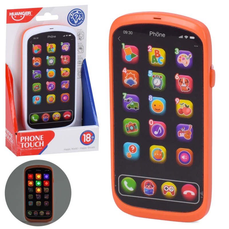 Телефон мобільний HE0564 (18шт) 15,5-8-1,5см, музика, звук(англ), світло, гра, 2 кольори, на бат-ці, в кор-ці, 12-20-4см