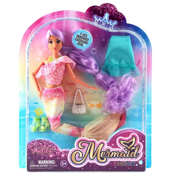 Лялька 616921 30см, русалка, шарнірна, довге волосся, взуття, спідниця, сумка, 28-36-5,5см