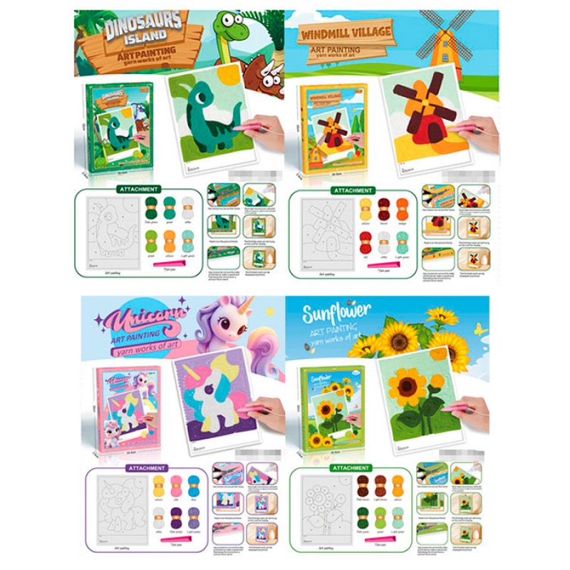 Набір для творчості 621-11-12-16-18 (60шт) картина нитками, 21-28см, нитки (6кольорів), коробка-рамка, 4 види, в кор-ці, 24,5-32-2,5см