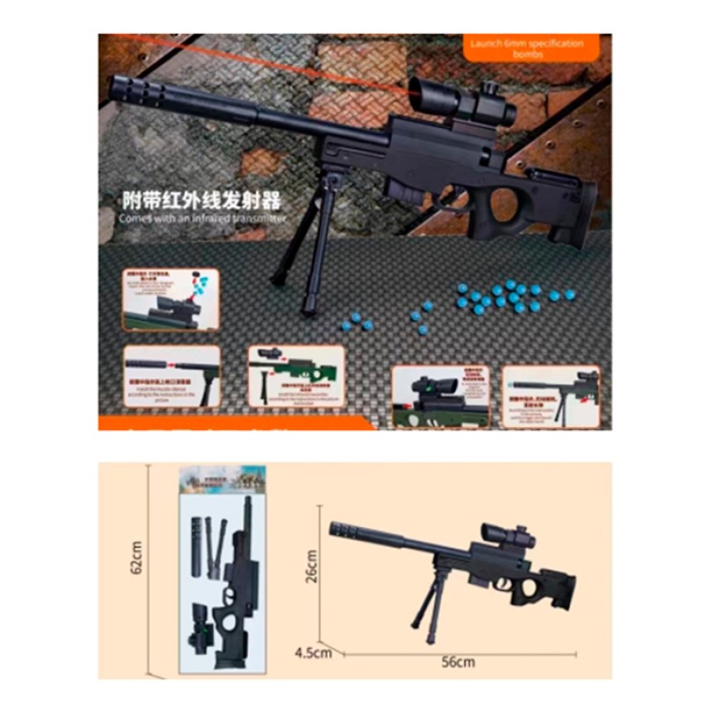 Автомат 28157 (36шт) 56см, водяні кулі, пластикові кулі, лазер, підставка, на бат(табл), у пакеті, 19-46-4см